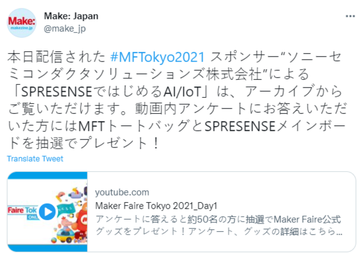 10/2 (土)、3(日)に、Maker Faire Tokyo 2021 の Online イベントが開催されました。