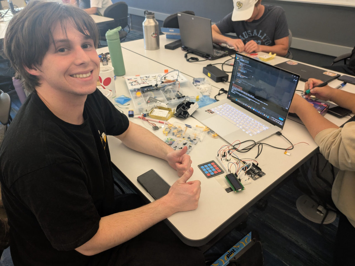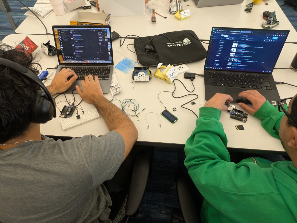 Cardboard robots, hydration reminders, and AI-powered productivity hacks – not an average Saturday. But at Cal Poly San Luis Obispo, that’s exactly what happened throughout the weekend, April 19–20, during the Computer Engineering Society’s (CPES) first-ever embedded systems hackathon powered by Sony’s Spresense boards.