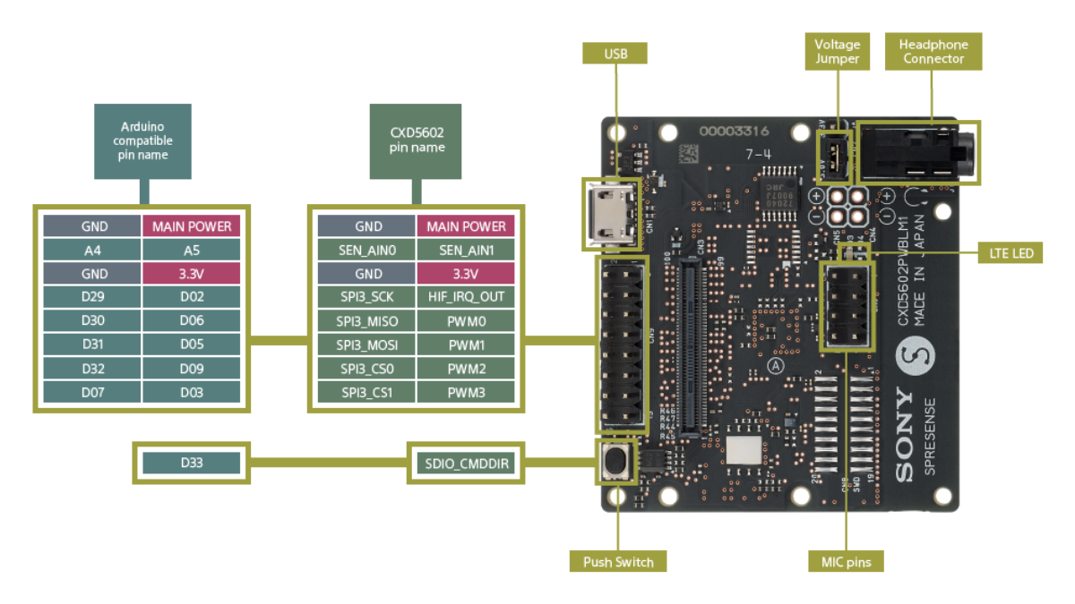 Spresense LTE extension board Digital input / output | Selectable from 3.3 V or 5 V |